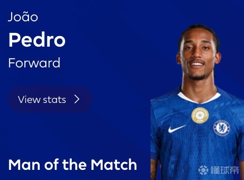 英超第24轮,切尔西主场3-2逆转击败西汉姆联,此役替补登场传射建功的切尔西前锋若昂-佩德罗当选全场最佳球员。