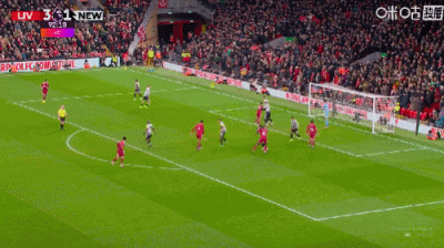 第36分钟,戈登禁区右路低射远角破门,纽卡1-0利物浦